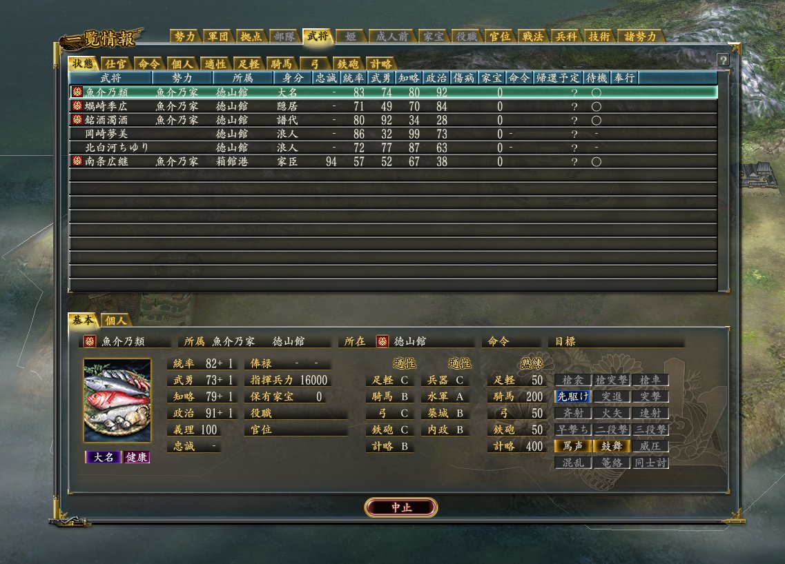 まずは蠣崎家。当主が「魚介乃類」に変更されてますね。「特産物の野望」ですね。