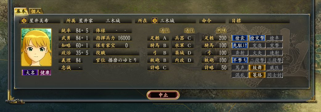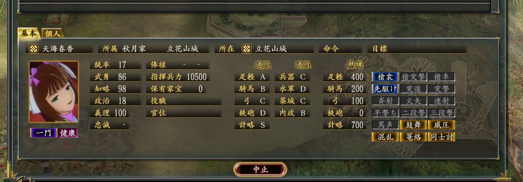 春香さんは。この春香さんは完全に閣下ですね。計略S、知略98、最初から同士討持ってるとか強すぎw。義理は100なんだ?