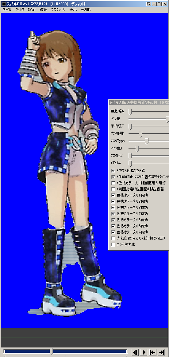 しかしオーバーレイトラックが動かせる(VSではINとOUTの方法だけ)とか、クロマキーが精度よいとか、オーバーレイトラックにアルファチャンネル(クロマキー色をアルファチャンネルにした場合ね)のほかに加算等も選べるとか、VSより機能が高い部分も多いです。VSのほうが基本的なインターフェースはよいけどね。
