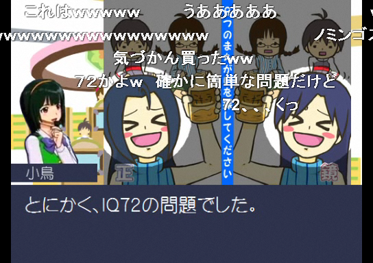 > C:24時間もぶっ続けでアイマスMADでも見るってのか?あんな下らない物を?