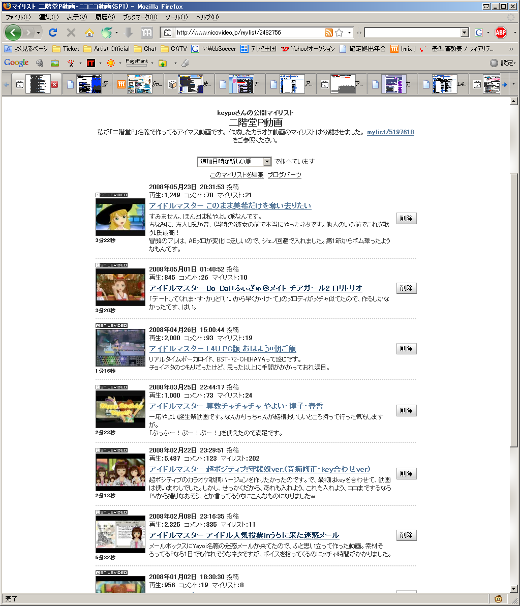 マイリストを見ました。"others"の一番上が、雌豚さんの「キューティーハニート」で、2番目が、雌豚さんの「VIP knows…」でした。ああ、このあたりがはじめてマイリスト使い始めた頃だったんだなぁ、と思いました。