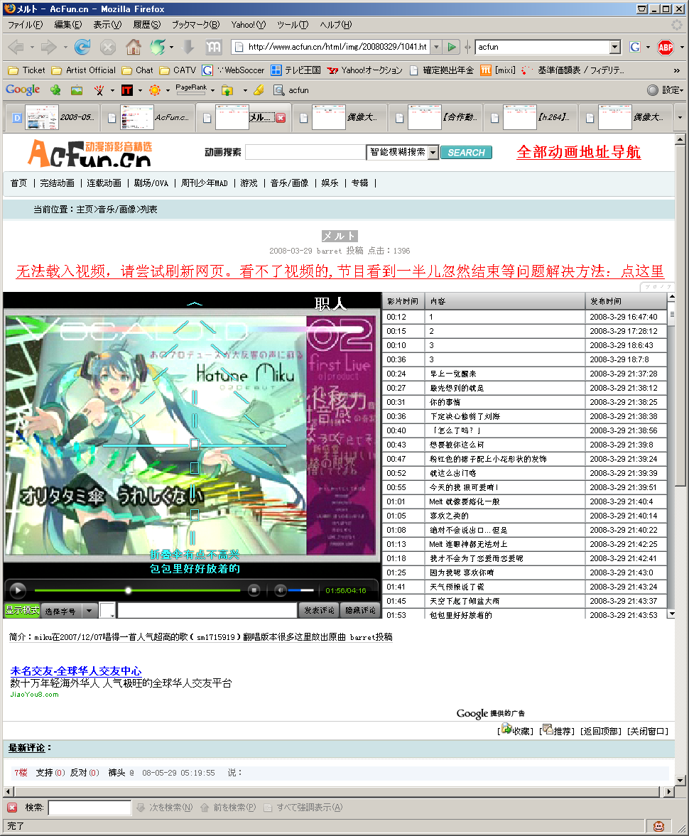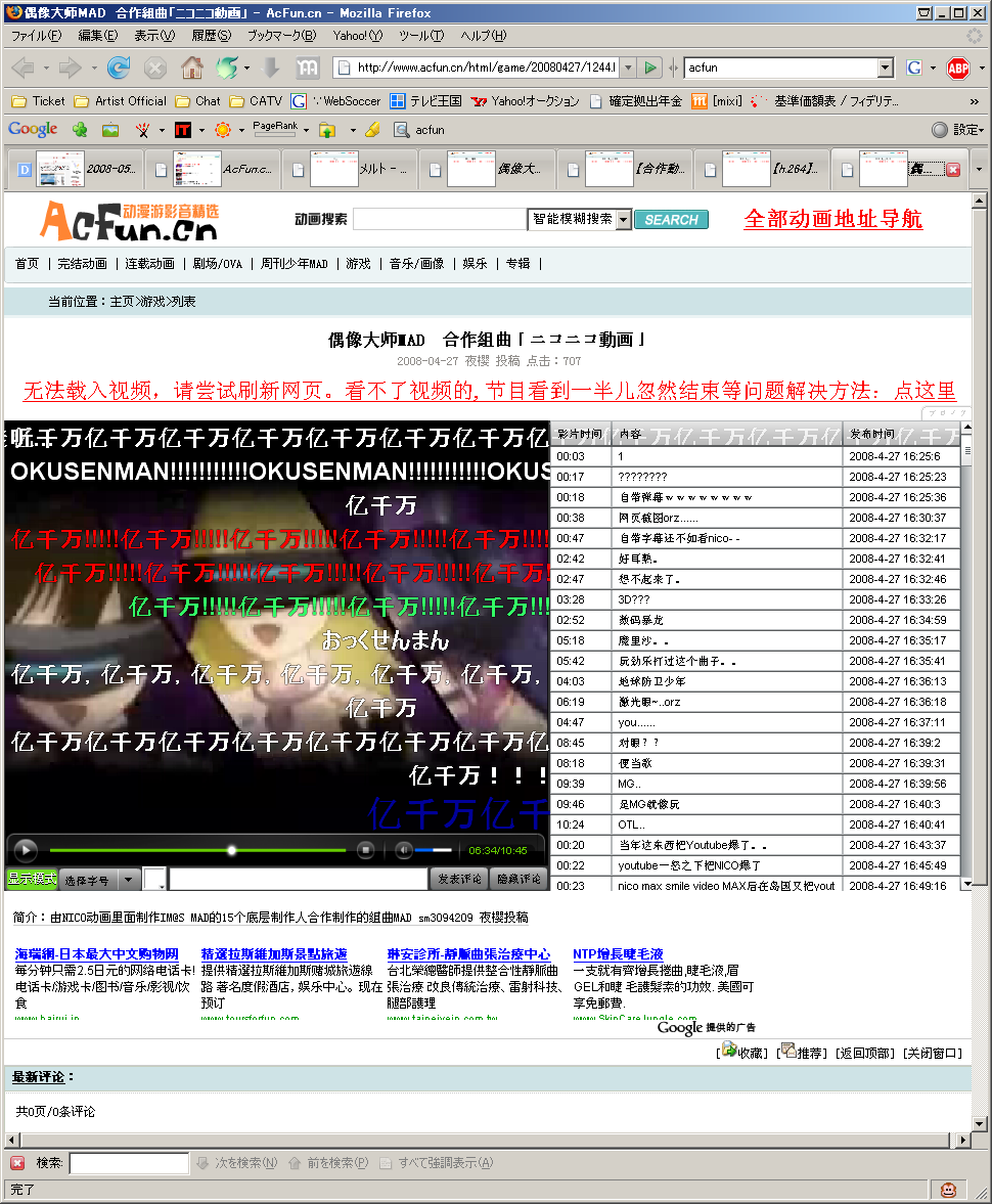 中国版ニコニコ。左下のコマンドボタンとか、まんまじゃねーかw。なにもココまで似せなくてもいいのに…。ちなみにニコニコと違って、視聴にIDはいらないようです。メチャ重くて、朝の時間でも見れない動画たくさんあるのですが…。