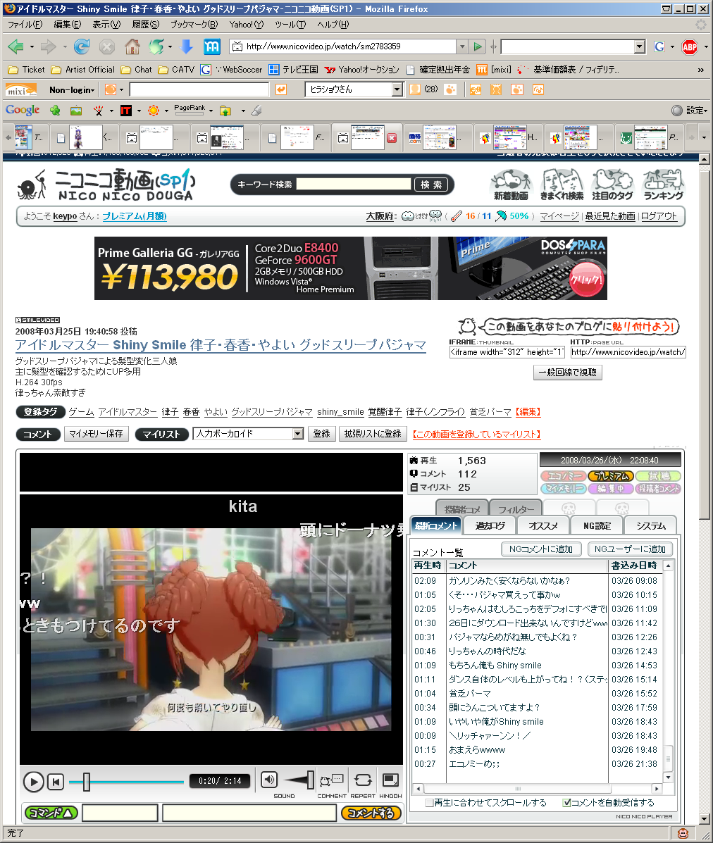 それと、ニコマスをターゲットにして、何かタグ全消し荒らしが出没しているようで。私の動画もやられて修復しておきました。自分で修復するのってサビシスw。ロック5個しかできないから、またやられたらいやだなぁ。